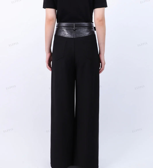 VEGAN LEATHER YOKE WAISTBAND PANT