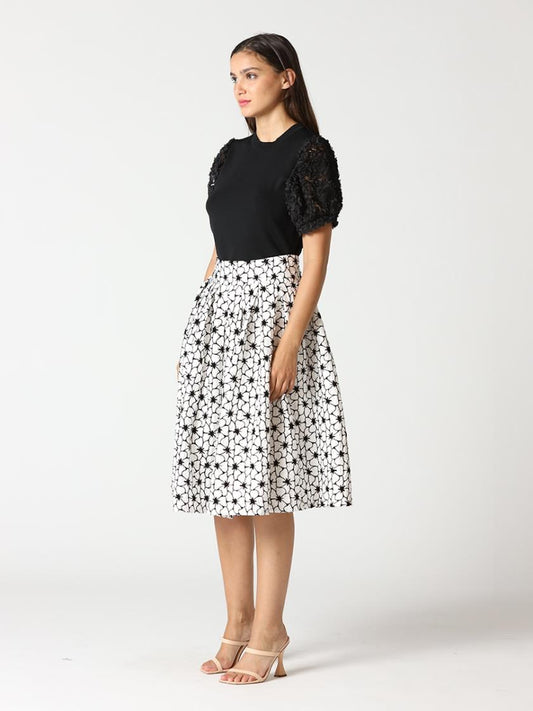 GRACIA PUCKERED FLORAL MIDI SKIRT