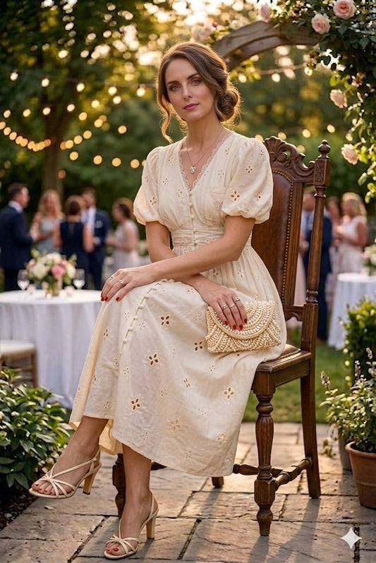 EMBROIDERED RUFFLE SLEEVE MAXI DRESS