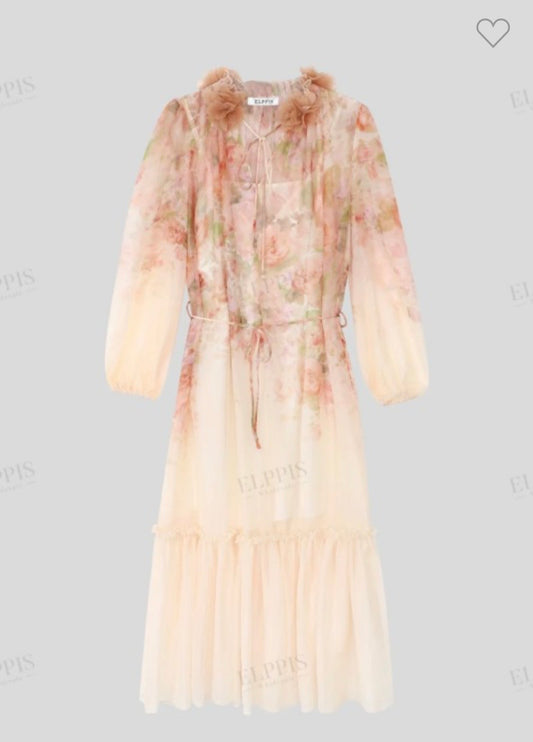 FLORAL PRINT SHEER LONG SLEEVE DRESS