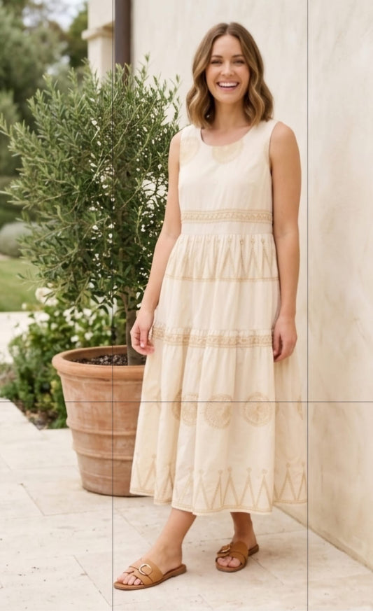EMBROIDERED SLEEVELESS MIDI DRESS