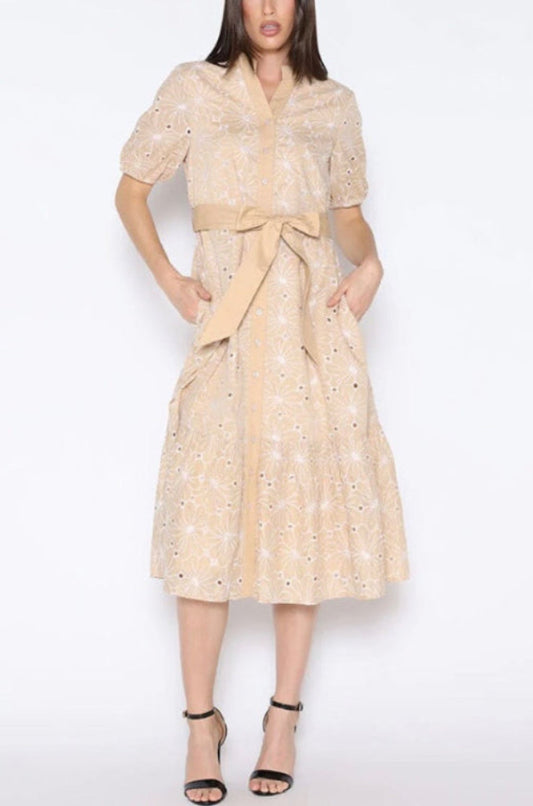 SLEEVELESS TIERED EMBROIDERED DRESS