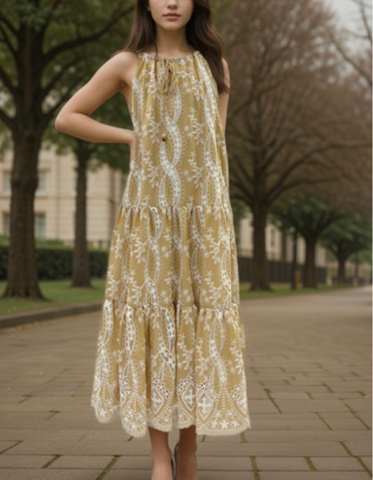 SLEEVELESS TIERED EMBROIDERED DRESS
