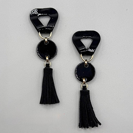 INDUMENTI BLACK LEATHER TASSLE EARRINGS