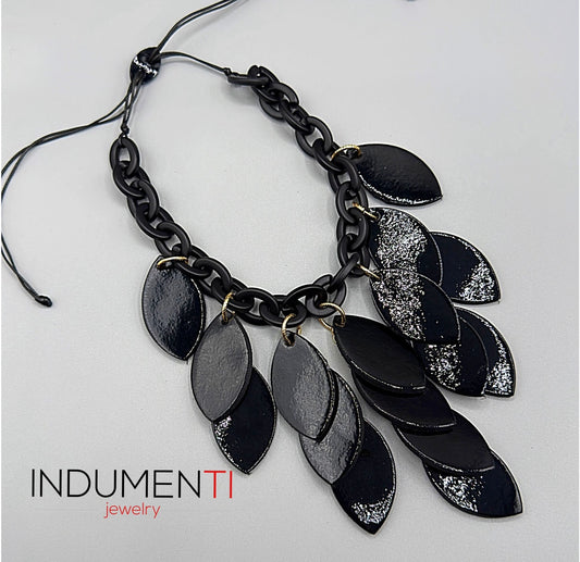 INDUMENTI BLACK LEATHER LEAF CHARM NECKLACE