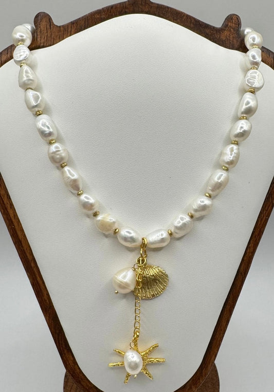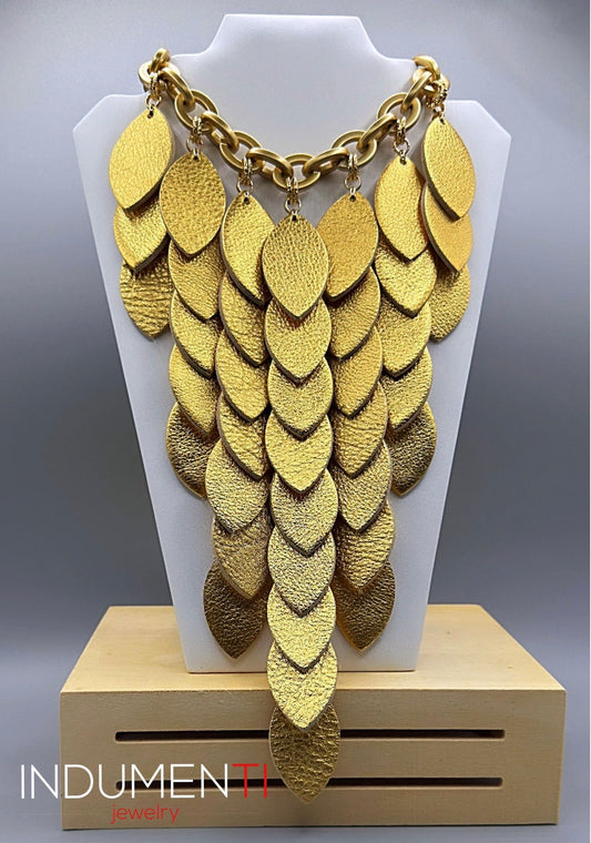 INDUMENTI GOLD LEATHER LEAF CHARM NECKLACE