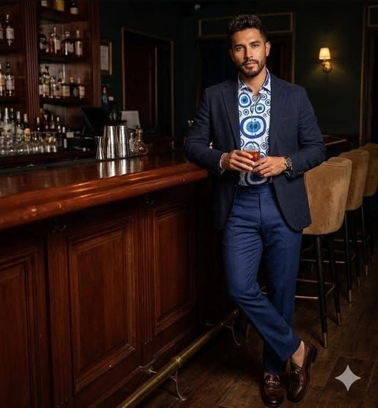 ADDICT BLUE MULTI SHORT SLEEVE GEO PRINT SHIRT