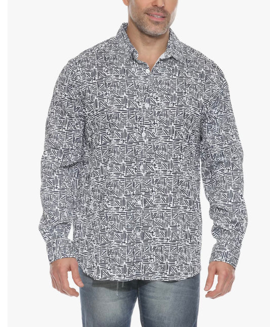MOJITO LONG SLEEVE TEXTURED NAVY PRINT SHIRT
