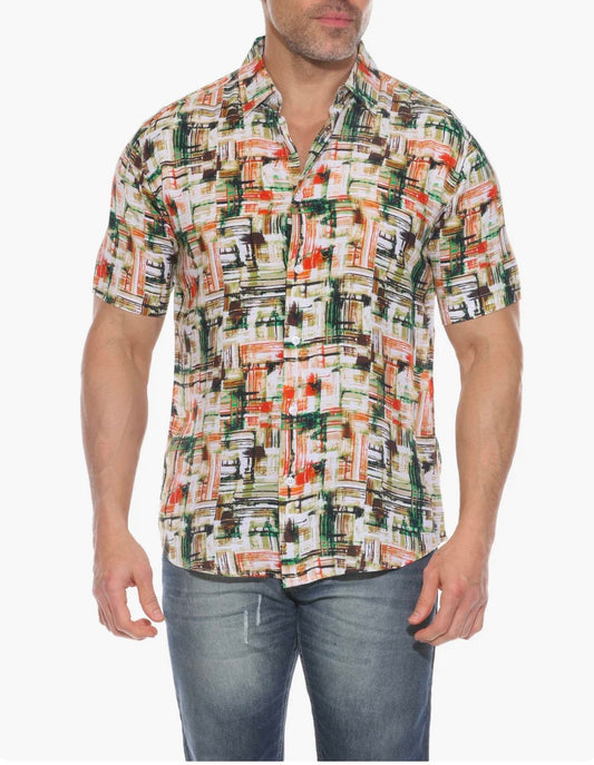 MOJITO SHORT SLEEVE GREEN MULTI RAYON RETRO PRINT SHIRT
