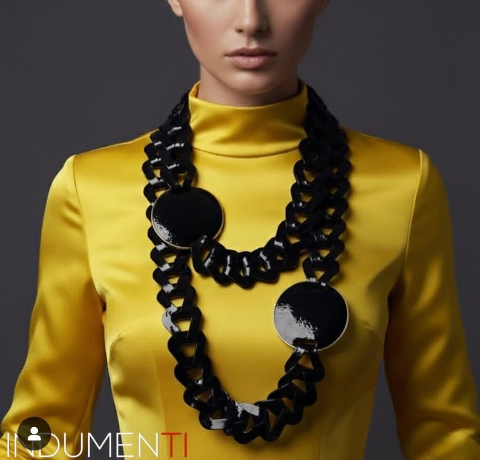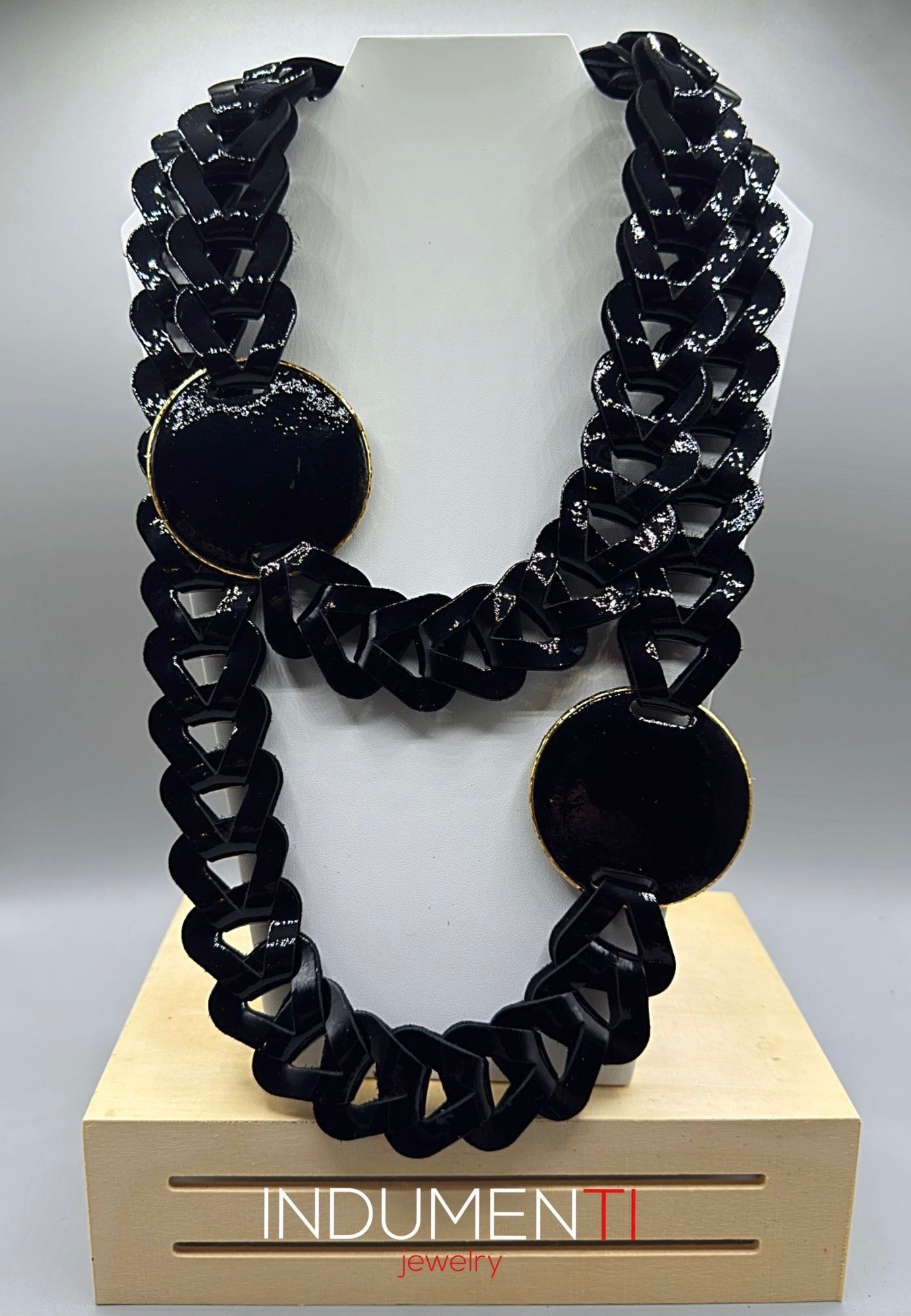INDUMENTI BLACK LEATHER DISK CHARM NECKLACE